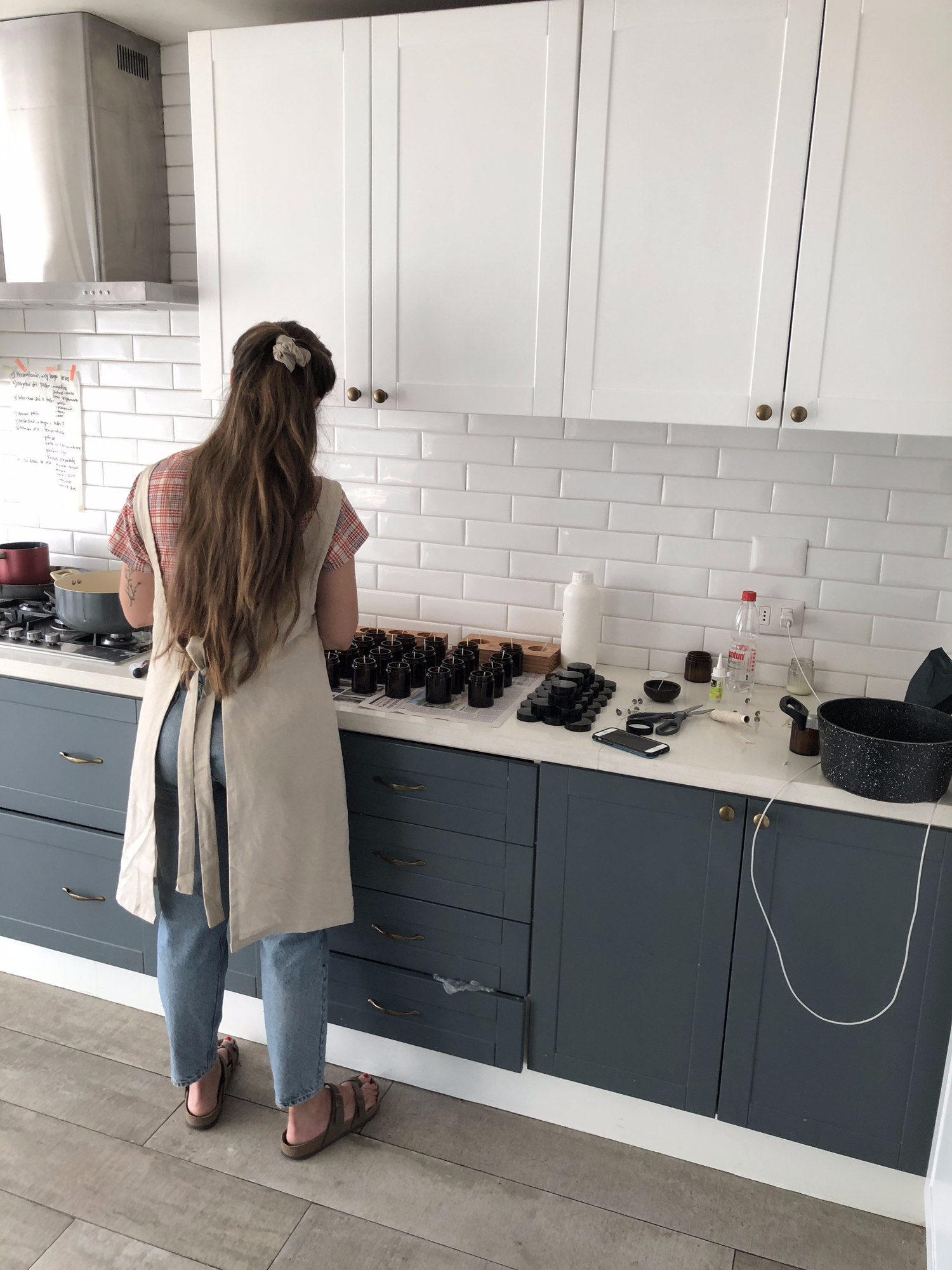 Me topé con un mercado sin insumos para velas de soja ni talleres para aprender a fabricarlas. Curiosa por naturaleza, empecé a investigar: armé mi Instagram con el objetivo de vender velas, viajé a Argentina y volví con una caja de 20 kg de cera de soja, 4 aromas de 250 ml y pabilos.